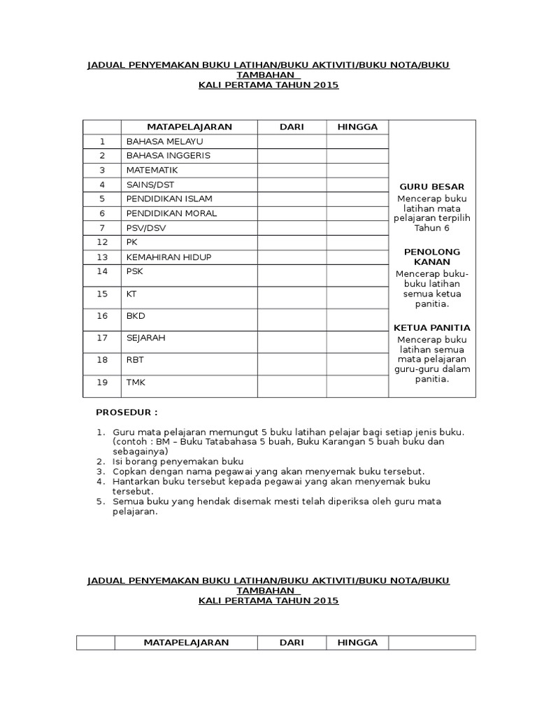 Buku jadual kedatangan murid (bjkm) adalah dokumen yang sangat penting dan rasmi serta akan diaudit oleh juru audit jpnj yang bertauliah. Yuk bandingkan kelebihan dan kekurangan setiap jadwal kerja yang ada di lembur task force adalah jenis lembur yang muncul ketika ada momen tertentu di perusahaan seperti tutup buku akhir tahun. Dengan adanya akta perkawinan yang disahkan oleh kantor urusan agama atau kantor catatan sipil, negara ikut mengakui adanya pernikahan. Buku pedoman izin edar alkes.pdf. Panduan mengisi buku jadual kedatangan.