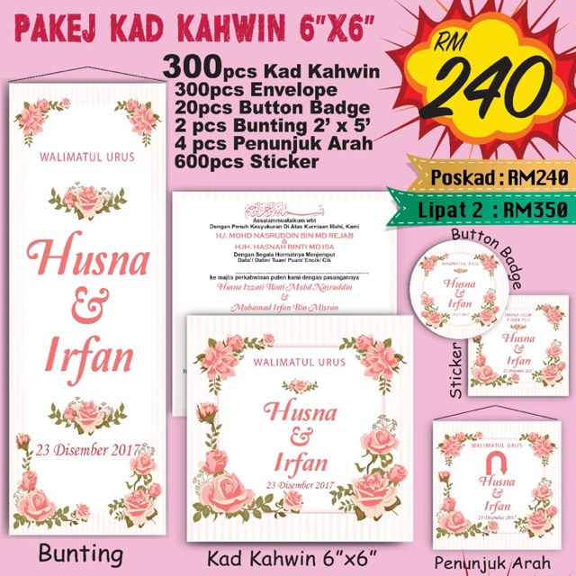 Связаться со страницей kad kahwin murah shah alam 19 sen в messenger. Gambar kad kahwin , kad jemputan kahwin , kad kahwin murah , prosedur tempahan online , tempah kad kahwin. Kami sedia menerima tempahan kad kahwin.hanya serendah 45 sen.jangan lepaskan peluang!! 10sen sekeping = kertas plain kad 160gsm 15sen sekeping = kertas glossy kad 157gsm minimum order 200kpg. Ejen rasmi kad kahwin runtuh.
