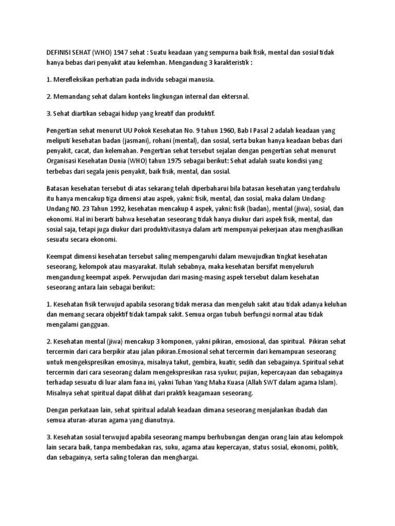 Definisi Sehat Menurut Uu Kesehatan : Pada dasarnya pengertian sehat menurut organisasi kesehatan dunia tersebut adalah sebuah kondisi idea, baik secara biologis, sosial, maupun juga psikologis yang.. Definisi who tentang sehat mempunyai karakteristik berikut yang dapat meningkatkan konsep sehat yang positif. Saya mau indonesia sehat, ayo tumbuhkan pola hidup sehat! ujar nila kepada para awak media termasuk jurnali berita olahraga indosport yang menteri kesehatan, nila farid moeloek berfoto bersama anggota dan staf sebelum memulai jumpa pers di gedung kemenkes, h.r.rasuna said. Definisi kesehatan menurut kemenkes yang tertulis dalam uu no. Menurut who (1947) sehat itu sendiri dapat diartikan bahwa suatu keadaan yang sempurna baik secara fisik, mental dan sosial serta tidak hanya bebas dari penyakit atau kelemahan. Berikut ini akan dikemukakan definisi sehat menurut beberapa ahli 8) menurut uu no.23 tahun 1992 tentang kesehatan, menyatakan bahwa sehat adalah keadaan sejahtera dari badan, jiwa, dan sosial yang memungkinkan hidup produktif secara sosial dan ekonomi.