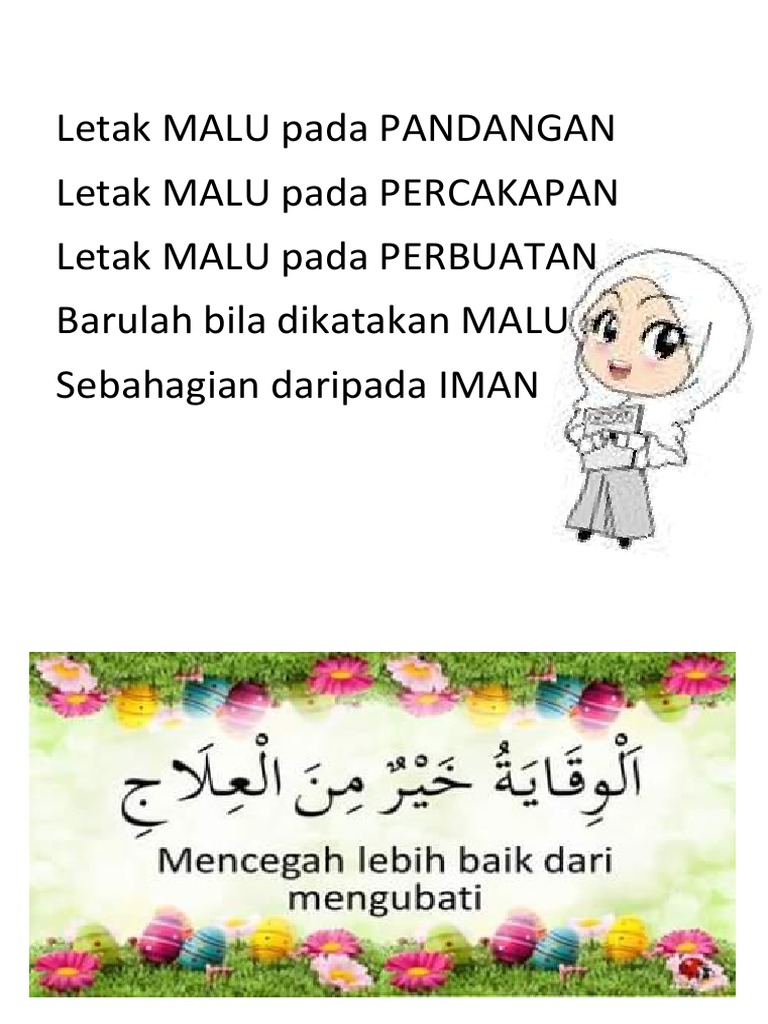 Janganlah menzalimi diri dengan meletakkan malu. Orang yang beriman sentiasa malu untuk. Sifat malu yaitu sebahagian daripada iman. Apabila kita memiliki sifat malu, ia mampu menghindarkan kita dari sebarang dosa. 'malu itu sebahagian daripada iman'.